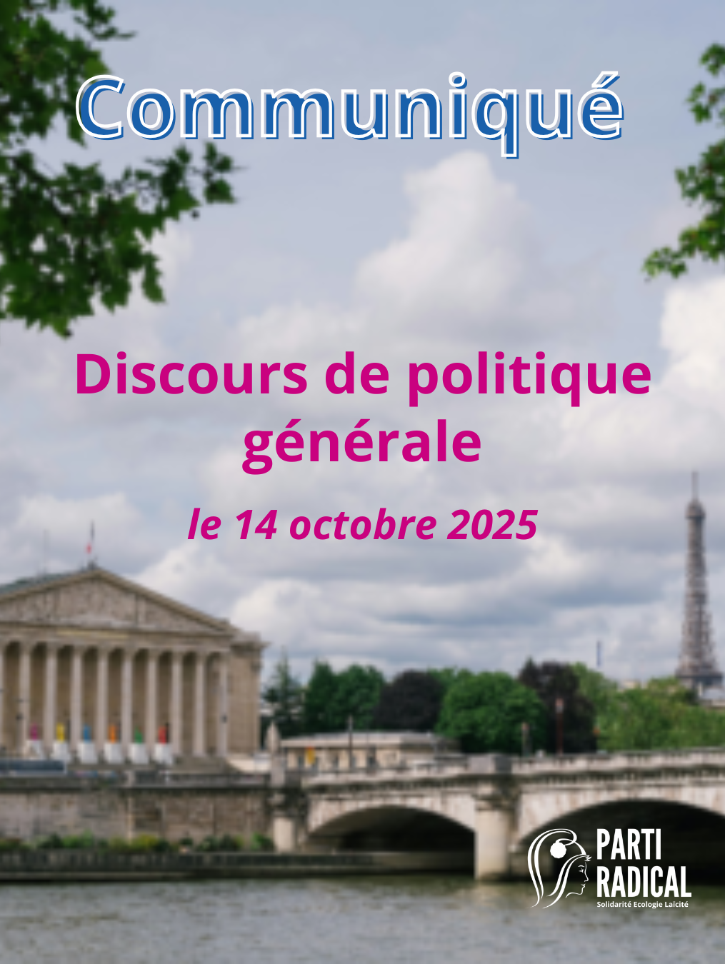 Le Parti Radical salue le discours de politique générale du Premier Ministre tourné vers le compromis et soucieux du retour à la stabilité politique, de la justice sociale et du sérieux budgétaire.
