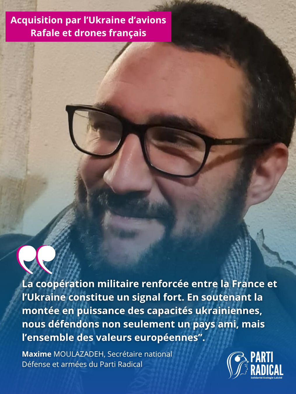 « Face à une guerre qui remet en cause les principes mêmes du droit international et de la liberté des peuples, la coopération militaire renforcée entre la France et l’Ukraine constitue un signal fort. En soutenant la montée en puissance des capacités ukrainiennes, nous défendons non seulement un pays ami, mais l’ensemble des valeurs européennes. » déclare Maxime Moulazadeh, Secrétaire National à la Défense et aux Armées.