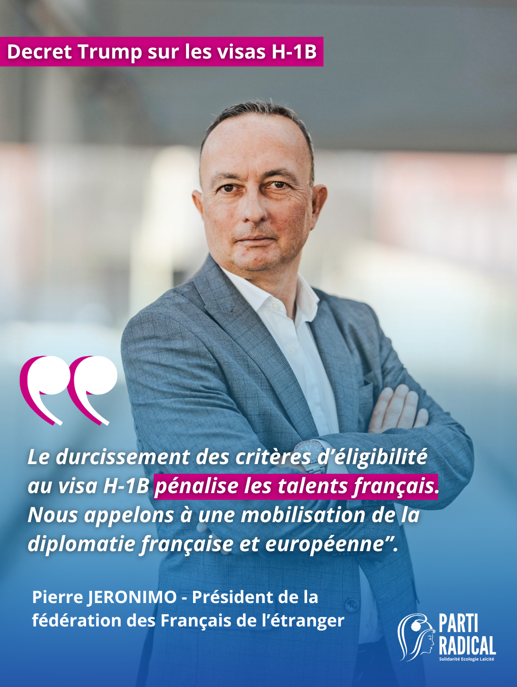 La Fédération des Français de l’Étranger du Parti Radical exprime sa profonde inquiétude à la suite du décret signé le 19 septembre 2025 par le Président Donald Trump, durcissant les conditions d’obtention du visa H-1B pour les travailleurs qualifiés étrangers.