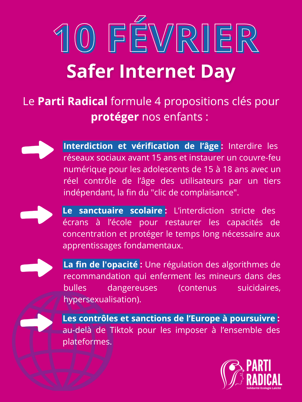 À l’occasion du Safer Internet Day, le Parti Radical dénonce l’emprise toxique des réseaux sociaux, TikTok en tête, sur la jeunesse française. Il est temps de passer de la prévention à la régulation.